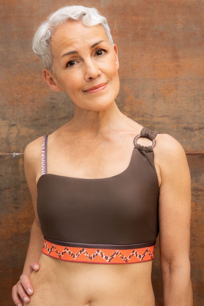 FAYOLA BRAUN Links ist das Bikini-Top für Frauen, die Wert auf selbstbestimmte Anpassung, sicheren Halt und eine feminine Silhouette legen. Der rechte Träger lässt sich individuell verstellen oder ganz abnehmen – so kannst Du Deinen Look jeden Tag neugestalten.